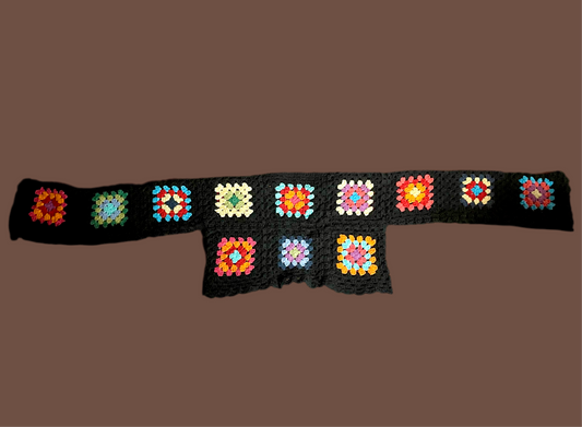 This piece is bursting with fall colors. I knew I wanted to make a dress but I had no idea what silhouette I was going to go with. After a lot of playing around with the squares. I finally came up with a cute layering piece for the Fall and Winter months.